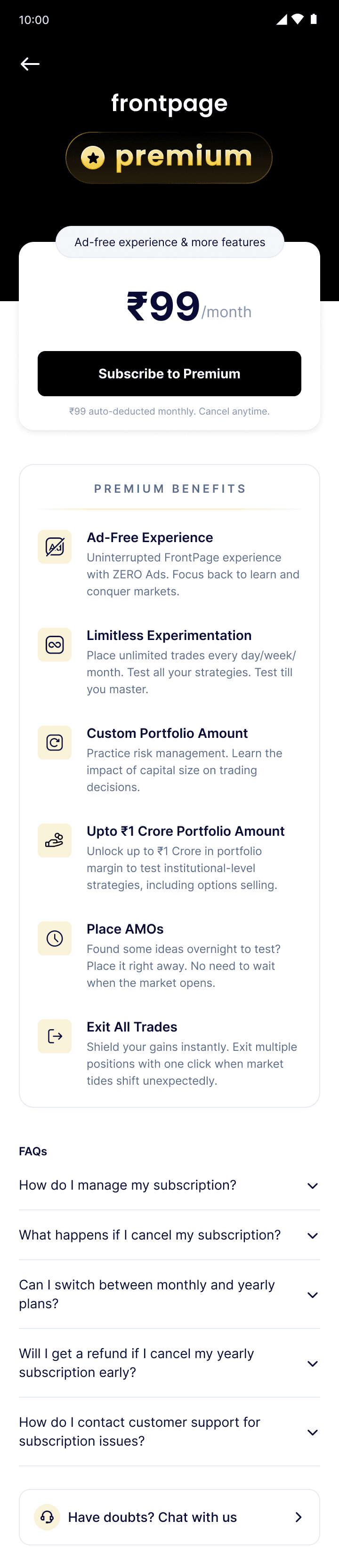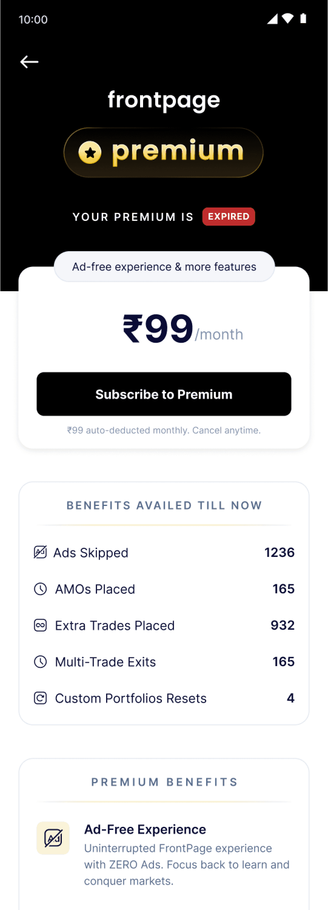 User Feedback & Surveys: We surveyed our existing user base to identify pain points and understand what premium features they would be willing to pay for. The most common requests were an ad-free experience, advanced trading tools, and access to good learning content.